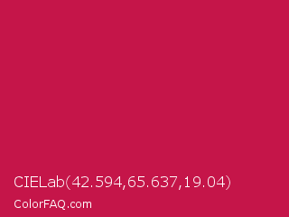 CIELab 42.594,65.637,19.04 Color is a normal rose color and the nearest color is Pictorial Carmine #c30b4e. Hex code #c51549 and RGB value is rgb(197,21,73). In RGB color space, this color is composed of 77% red, 8% green, 29% blue, In CMYK color space, this color is composed of 0% cyan, 89% magenta, 63% yellow , 23% black , In HSL color space, this color has a hue angle of 342° , 81% saturation and 43% lightness.