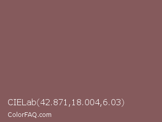 CIELab 42.871,18.004,6.03 Color is a normal red color and the nearest color is Deep Taupe #7e5e60. Hex code #855a5c and RGB value is rgb(133,90,92). In RGB color space, this color is composed of 52% red, 35% green, 36% blue, In CMYK color space, this color is composed of 0% cyan, 32% magenta, 31% yellow , 48% black , In HSL color space, this color has a hue angle of 357° , 19% saturation and 44% lightness.