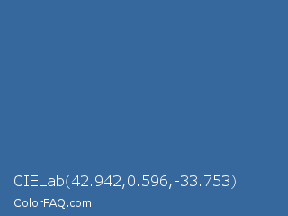 CIELab 42.942,0.596,-33.753 Color is a normal blue color and the nearest color is Azure #315ba1. Hex code #36689d and RGB value is rgb(54,104,157). In RGB color space, this color is composed of 21% red, 41% green, 62% blue, In CMYK color space, this color is composed of 66% cyan, 34% magenta, 0% yellow , 38% black , In HSL color space, this color has a hue angle of 211° , 49% saturation and 41% lightness.