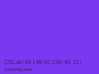 CIELab 43.148,66.128,-81.21 Color is a normal violet color and the nearest color is Blue Violet #8a2be2. Hex code #7a38f0 and RGB value is rgb(122,56,240). In RGB color space, this color is composed of 48% red, 22% green, 94% blue, In CMYK color space, this color is composed of 49% cyan, 77% magenta, 0% yellow , 6% black , In HSL color space, this color has a hue angle of 262° , 86% saturation and 58% lightness.