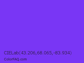 CIELab 43.206,68.065,-83.934 Color is a normal violet color and the nearest color is Blue Violet #8a2be2. Hex code #7936f5 and RGB value is rgb(121,54,245). In RGB color space, this color is composed of 47% red, 21% green, 96% blue, In CMYK color space, this color is composed of 51% cyan, 78% magenta, 0% yellow , 4% black , In HSL color space, this color has a hue angle of 261° , 91% saturation and 59% lightness.