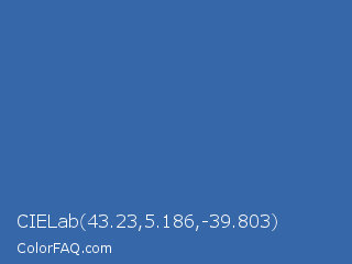 CIELab 43.23,5.186,-39.803 Color is a normal blue color and the nearest color is Azure #315ba1. Hex code #3667a8 and RGB value is rgb(54,103,168). In RGB color space, this color is composed of 21% red, 40% green, 66% blue, In CMYK color space, this color is composed of 68% cyan, 39% magenta, 0% yellow , 34% black , In HSL color space, this color has a hue angle of 214° , 51% saturation and 44% lightness.