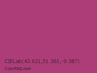 CIELab 43.621,51.361,-9.387 Color is a normal rose color and the nearest color is Mystic Maroon #ad4379. Hex code #ad3d78 and RGB value is rgb(173,61,120). In RGB color space, this color is composed of 68% red, 24% green, 47% blue, In CMYK color space, this color is composed of 0% cyan, 65% magenta, 31% yellow , 32% black , In HSL color space, this color has a hue angle of 328° , 48% saturation and 46% lightness.
