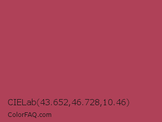 CIELab 43.652,46.728,10.46 Color is a normal red color and the nearest color is Hippie Pink #ae4560. Hex code #af4158 and RGB value is rgb(175,65,88). In RGB color space, this color is composed of 69% red, 25% green, 35% blue, In CMYK color space, this color is composed of 0% cyan, 63% magenta, 50% yellow , 31% black , In HSL color space, this color has a hue angle of 347° , 46% saturation and 47% lightness.