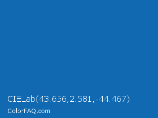 CIELab 43.656,2.581,-44.467 Color is a normal blue color and the nearest color is Green Blue #1164b4. Hex code #116ab1 and RGB value is rgb(17,106,177). In RGB color space, this color is composed of 7% red, 42% green, 69% blue, In CMYK color space, this color is composed of 90% cyan, 40% magenta, 0% yellow , 31% black , In HSL color space, this color has a hue angle of 207° , 82% saturation and 38% lightness.