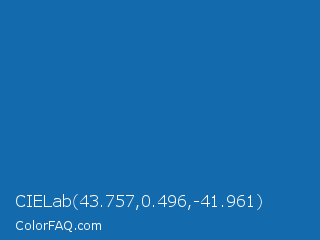 CIELab 43.757,0.496,-41.961 Color is a normal blue color and the nearest color is Green Blue #1164b4. Hex code #136bad and RGB value is rgb(19,107,173). In RGB color space, this color is composed of 7% red, 42% green, 68% blue, In CMYK color space, this color is composed of 89% cyan, 38% magenta, 0% yellow , 32% black , In HSL color space, this color has a hue angle of 206° , 80% saturation and 38% lightness.