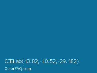 CIELab 43.82,-10.52,-29.482 Color is a normal blue color and the nearest color is Sea Blue #006994. Hex code #0c6f98 and RGB value is rgb(12,111,152). In RGB color space, this color is composed of 5% red, 44% green, 60% blue, In CMYK color space, this color is composed of 92% cyan, 27% magenta, 0% yellow , 40% black , In HSL color space, this color has a hue angle of 198° , 85% saturation and 32% lightness.
