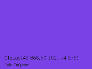 CIELab 43.868,59.102,-74.375 Color is a normal indigo color and the nearest color is Blue Violet #8a2be2. Hex code #7a42e6 and RGB value is rgb(122,66,230). In RGB color space, this color is composed of 48% red, 26% green, 90% blue, In CMYK color space, this color is composed of 47% cyan, 71% magenta, 0% yellow , 10% black , In HSL color space, this color has a hue angle of 260° , 77% saturation and 58% lightness.