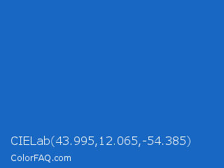 CIELab 43.995,12.065,-54.385 Color is a normal blue color and the nearest color is Denim #1560bd. Hex code #1867c3 and RGB value is rgb(24,103,195). In RGB color space, this color is composed of 9% red, 40% green, 76% blue, In CMYK color space, this color is composed of 88% cyan, 47% magenta, 0% yellow , 24% black , In HSL color space, this color has a hue angle of 212° , 78% saturation and 43% lightness.