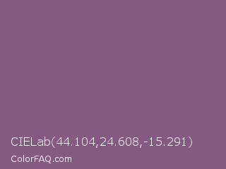 CIELab 44.104,24.608,-15.291 Color is a normal magenta color and the nearest color is Chinese Violet #856088. Hex code #855a82 and RGB value is rgb(133,90,130). In RGB color space, this color is composed of 52% red, 35% green, 51% blue, In CMYK color space, this color is composed of 0% cyan, 32% magenta, 2% yellow , 48% black , In HSL color space, this color has a hue angle of 304° , 19% saturation and 44% lightness.