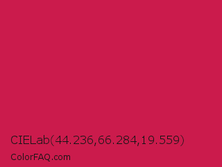CIELab 44.236,66.284,19.559 Color is a normal rose color and the nearest color is Maroon Flush #c32148. Hex code #cb1b4c and RGB value is rgb(203,27,76). In RGB color space, this color is composed of 80% red, 11% green, 30% blue, In CMYK color space, this color is composed of 0% cyan, 87% magenta, 63% yellow , 20% black , In HSL color space, this color has a hue angle of 343° , 77% saturation and 45% lightness.