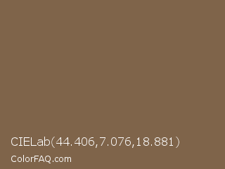 CIELab 44.406,7.076,18.881 Color is a normal orange color and the nearest color is Raw Umber #826644. Hex code #7f644a and RGB value is rgb(127,100,74). In RGB color space, this color is composed of 50% red, 39% green, 29% blue, In CMYK color space, this color is composed of 0% cyan, 21% magenta, 42% yellow , 50% black , In HSL color space, this color has a hue angle of 29° , 26% saturation and 39% lightness.