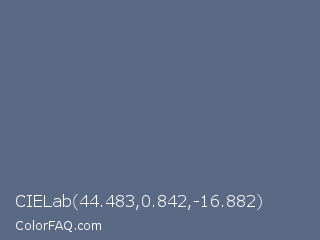 CIELab 44.483,0.842,-16.882 Color is a normal blue color and the nearest color is Paynes Grey #536878. Hex code #5a6a85 and RGB value is rgb(90,106,133). In RGB color space, this color is composed of 35% red, 42% green, 52% blue, In CMYK color space, this color is composed of 32% cyan, 20% magenta, 0% yellow , 48% black , In HSL color space, this color has a hue angle of 218° , 19% saturation and 44% lightness.