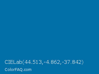 CIELab 44.513,-4.862,-37.842 Color is a normal blue color and the nearest color is Honolulu Blue #006db0. Hex code #006fa8 and RGB value is rgb(0,111,168). In RGB color space, this color is composed of 0% red, 44% green, 66% blue, In CMYK color space, this color is composed of 100% cyan, 34% magenta, 0% yellow , 34% black , In HSL color space, this color has a hue angle of 200° , 100% saturation and 33% lightness.