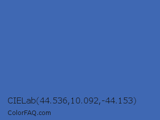 CIELab 44.536,10.092,-44.153 Color is a normal blue color and the nearest color is San Marino #456cac. Hex code #3f68b3 and RGB value is rgb(63,104,179). In RGB color space, this color is composed of 25% red, 41% green, 70% blue, In CMYK color space, this color is composed of 65% cyan, 42% magenta, 0% yellow , 30% black , In HSL color space, this color has a hue angle of 219° , 48% saturation and 47% lightness.