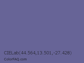CIELab 44.564,13.501,-27.428 Color is a normal indigo color and the nearest color is Dark Blue Gray #666699. Hex code #676497 and RGB value is rgb(103,100,151). In RGB color space, this color is composed of 40% red, 39% green, 59% blue, In CMYK color space, this color is composed of 32% cyan, 34% magenta, 0% yellow , 41% black , In HSL color space, this color has a hue angle of 244° , 20% saturation and 49% lightness.