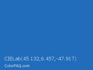 CIELab 45.132,6.457,-47.917 Color is a normal blue color and the nearest color is Denim #1560bd. Hex code #216cbb and RGB value is rgb(33,108,187). In RGB color space, this color is composed of 13% red, 42% green, 73% blue, In CMYK color space, this color is composed of 82% cyan, 42% magenta, 0% yellow , 27% black , In HSL color space, this color has a hue angle of 211° , 70% saturation and 43% lightness.