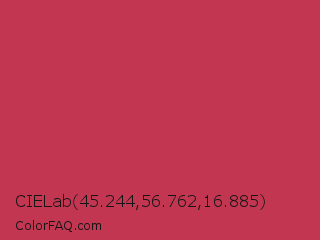 CIELab 45.244,56.762,16.885 Color is a normal red color and the nearest color is Dingy Dungeon #c53151. Hex code #c23652 and RGB value is rgb(194,54,82). In RGB color space, this color is composed of 76% red, 21% green, 32% blue, In CMYK color space, this color is composed of 0% cyan, 72% magenta, 58% yellow , 24% black , In HSL color space, this color has a hue angle of 348° , 56% saturation and 49% lightness.