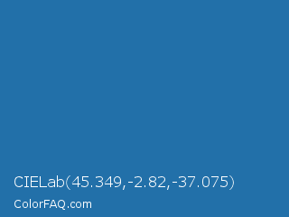 CIELab 45.349,-2.82,-37.075 Color is a normal blue color and the nearest color is Matisse #1b659d. Hex code #2270a9 and RGB value is rgb(34,112,169). In RGB color space, this color is composed of 13% red, 44% green, 66% blue, In CMYK color space, this color is composed of 80% cyan, 34% magenta, 0% yellow , 34% black , In HSL color space, this color has a hue angle of 205° , 67% saturation and 40% lightness.