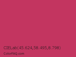 CIELab 45.624,58.495,8.798 Color is a normal rose color and the nearest color is Dingy Dungeon #c53151. Hex code #c33560 and RGB value is rgb(195,53,96). In RGB color space, this color is composed of 76% red, 21% green, 38% blue, In CMYK color space, this color is composed of 0% cyan, 73% magenta, 51% yellow , 24% black , In HSL color space, this color has a hue angle of 342° , 57% saturation and 49% lightness.