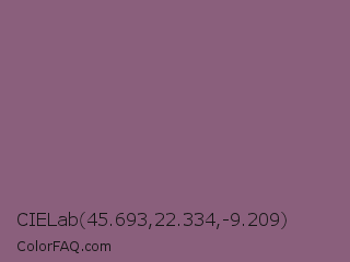CIELab 45.693,22.334,-9.209 Color is a normal magenta color and the nearest color is Antique Fuchsia #915c83. Hex code #8a5f7c and RGB value is rgb(138,95,124). In RGB color space, this color is composed of 54% red, 37% green, 49% blue, In CMYK color space, this color is composed of 0% cyan, 31% magenta, 10% yellow , 46% black , In HSL color space, this color has a hue angle of 320° , 18% saturation and 46% lightness.