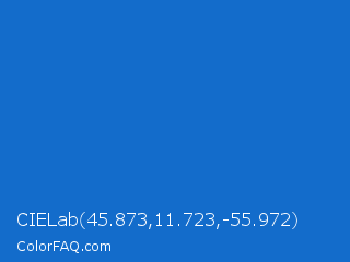 CIELab 45.873,11.723,-55.972 Color is a normal blue color and the nearest color is Bright Navy Blue #1974d2. Hex code #136ccb and RGB value is rgb(19,108,203). In RGB color space, this color is composed of 7% red, 42% green, 80% blue, In CMYK color space, this color is composed of 91% cyan, 47% magenta, 0% yellow , 20% black , In HSL color space, this color has a hue angle of 211° , 83% saturation and 44% lightness.