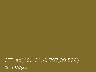 CIELab 46.164,-0.797,39.529 Color is a normal yellow color and the nearest color is Spanish Bistre #807532. Hex code #7f6c28 and RGB value is rgb(127,108,40). In RGB color space, this color is composed of 50% red, 42% green, 16% blue, In CMYK color space, this color is composed of 0% cyan, 15% magenta, 69% yellow , 50% black , In HSL color space, this color has a hue angle of 47° , 52% saturation and 33% lightness.