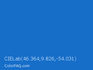 CIELab 46.364,9.826,-54.031 Color is a normal blue color and the nearest color is Bright Navy Blue #1974d2. Hex code #166ec9 and RGB value is rgb(22,110,201). In RGB color space, this color is composed of 9% red, 43% green, 79% blue, In CMYK color space, this color is composed of 89% cyan, 45% magenta, 0% yellow , 21% black , In HSL color space, this color has a hue angle of 211° , 80% saturation and 44% lightness.