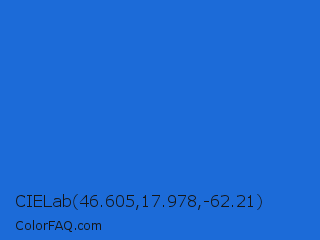 CIELab 46.605,17.978,-62.21 Color is a normal blue color and the nearest color is Bright Navy Blue #1974d2. Hex code #1c6bd8 and RGB value is rgb(28,107,216). In RGB color space, this color is composed of 11% red, 42% green, 85% blue, In CMYK color space, this color is composed of 87% cyan, 50% magenta, 0% yellow , 15% black , In HSL color space, this color has a hue angle of 215° , 77% saturation and 48% lightness.