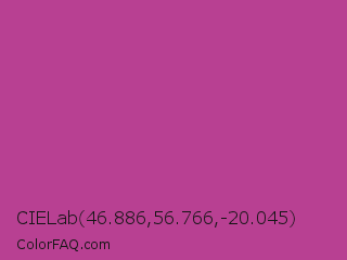 CIELab 46.886,56.766,-20.045 Color is a normal magenta color and the nearest color is Fandango #b53389. Hex code #b84092 and RGB value is rgb(184,64,146). In RGB color space, this color is composed of 72% red, 25% green, 57% blue, In CMYK color space, this color is composed of 0% cyan, 65% magenta, 21% yellow , 28% black , In HSL color space, this color has a hue angle of 319° , 48% saturation and 49% lightness.