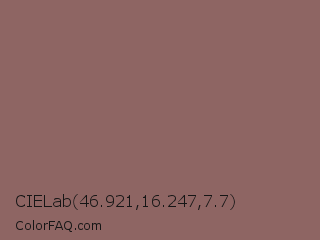 CIELab 46.921,16.247,7.7 Color is a normal red color and the nearest color is Rose Taupe #905d5d. Hex code #8e6563 and RGB value is rgb(142,101,99). In RGB color space, this color is composed of 56% red, 40% green, 39% blue, In CMYK color space, this color is composed of 0% cyan, 29% magenta, 30% yellow , 44% black , In HSL color space, this color has a hue angle of 3° , 18% saturation and 47% lightness.