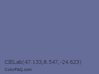 CIELab 47.133,8.547,-24.623 Color is a normal blue color and the nearest color is Dark Blue Gray #666699. Hex code #676d99 and RGB value is rgb(103,109,153). In RGB color space, this color is composed of 40% red, 43% green, 60% blue, In CMYK color space, this color is composed of 33% cyan, 29% magenta, 0% yellow , 40% black , In HSL color space, this color has a hue angle of 233° , 20% saturation and 50% lightness.