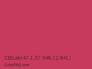 CIELab 47.1,57.948,12.841 Color is a normal red color and the nearest color is Brick Red #cb4154. Hex code #c83a5d and RGB value is rgb(200,58,93). In RGB color space, this color is composed of 78% red, 23% green, 36% blue, In CMYK color space, this color is composed of 0% cyan, 71% magenta, 54% yellow , 22% black , In HSL color space, this color has a hue angle of 345° , 56% saturation and 51% lightness.