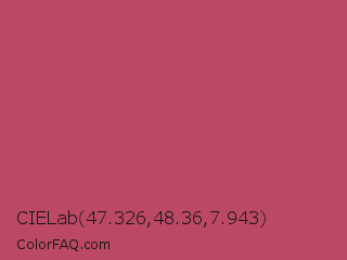 CIELab 47.326,48.36,7.943 Color is a normal red color and the nearest color is Popstar #be4f62. Hex code #bb4965 and RGB value is rgb(187,73,101). In RGB color space, this color is composed of 73% red, 29% green, 40% blue, In CMYK color space, this color is composed of 0% cyan, 61% magenta, 46% yellow , 27% black , In HSL color space, this color has a hue angle of 345° , 46% saturation and 51% lightness.