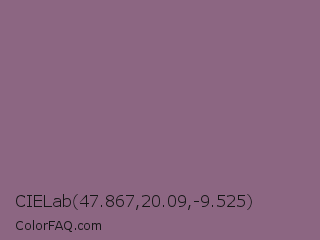 CIELab 47.867,20.09,-9.525 Color is a normal magenta color and the nearest color is Strikemaster #956387. Hex code #8c6682 and RGB value is rgb(140,102,130). In RGB color space, this color is composed of 55% red, 40% green, 51% blue, In CMYK color space, this color is composed of 0% cyan, 27% magenta, 7% yellow , 45% black , In HSL color space, this color has a hue angle of 316° , 16% saturation and 47% lightness.