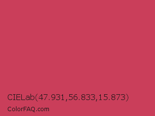 CIELab 47.931,56.833,15.873 Color is a normal red color and the nearest color is Brick Red #cb4154. Hex code #ca3e5a and RGB value is rgb(202,62,90). In RGB color space, this color is composed of 79% red, 24% green, 35% blue, In CMYK color space, this color is composed of 0% cyan, 69% magenta, 55% yellow , 21% black , In HSL color space, this color has a hue angle of 348° , 57% saturation and 52% lightness.