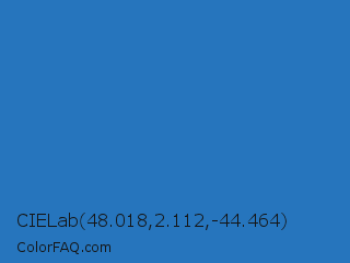 CIELab 48.018,2.112,-44.464 Color is a normal blue color and the nearest color is Mariner #286acd. Hex code #2675bd and RGB value is rgb(38,117,189). In RGB color space, this color is composed of 15% red, 46% green, 74% blue, In CMYK color space, this color is composed of 80% cyan, 38% magenta, 0% yellow , 26% black , In HSL color space, this color has a hue angle of 209° , 67% saturation and 45% lightness.