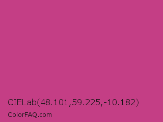 CIELab 48.101,59.225,-10.182 Color is a normal rose color and the nearest color is Smitten #c84186. Hex code #c43e85 and RGB value is rgb(196,62,133). In RGB color space, this color is composed of 77% red, 24% green, 52% blue, In CMYK color space, this color is composed of 0% cyan, 68% magenta, 32% yellow , 23% black , In HSL color space, this color has a hue angle of 328° , 53% saturation and 51% lightness.