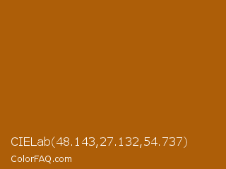 CIELab 48.143,27.132,54.737 Color is a normal orange color and the nearest color is Pumpkin Skin #b1610b. Hex code #ad5e08 and RGB value is rgb(173,94,8). In RGB color space, this color is composed of 68% red, 37% green, 3% blue, In CMYK color space, this color is composed of 0% cyan, 46% magenta, 95% yellow , 32% black , In HSL color space, this color has a hue angle of 31° , 91% saturation and 35% lightness.