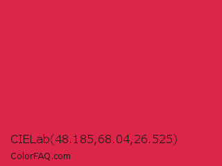 CIELab 48.185,68.04,26.525 Color is a normal red color and the nearest color is Rusty Red #da2c43. Hex code #db264a and RGB value is rgb(219,38,74). In RGB color space, this color is composed of 86% red, 15% green, 29% blue, In CMYK color space, this color is composed of 0% cyan, 83% magenta, 66% yellow , 14% black , In HSL color space, this color has a hue angle of 348° , 72% saturation and 50% lightness.