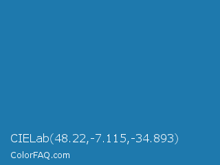 CIELab 48.22,-7.115,-34.893 Color is a normal blue color and the nearest color is Jelly Bean #297b9a. Hex code #1e79ad and RGB value is rgb(30,121,173). In RGB color space, this color is composed of 12% red, 47% green, 68% blue, In CMYK color space, this color is composed of 83% cyan, 30% magenta, 0% yellow , 32% black , In HSL color space, this color has a hue angle of 202° , 70% saturation and 40% lightness.