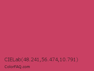 CIELab 48.241,56.474,10.791 Color is a normal red color and the nearest color is Brick Red #cb4154. Hex code #c94063 and RGB value is rgb(201,64,99). In RGB color space, this color is composed of 79% red, 25% green, 39% blue, In CMYK color space, this color is composed of 0% cyan, 68% magenta, 51% yellow , 21% black , In HSL color space, this color has a hue angle of 345° , 56% saturation and 52% lightness.