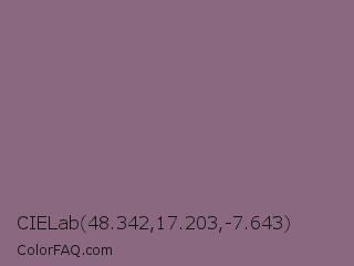 CIELab 48.342,17.203,-7.643 Color is a normal magenta color and the nearest color is Chinese Violet #856088. Hex code #8a6980 and RGB value is rgb(138,105,128). In RGB color space, this color is composed of 54% red, 41% green, 50% blue, In CMYK color space, this color is composed of 0% cyan, 24% magenta, 7% yellow , 46% black , In HSL color space, this color has a hue angle of 318° , 14% saturation and 48% lightness.