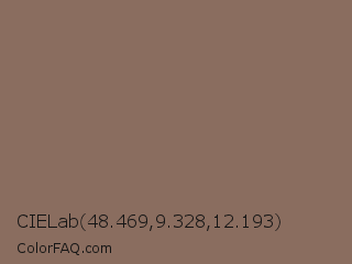 CIELab 48.469,9.328,12.193 Color is a normal orange color and the nearest color is Beaver Crayola #926f5b. Hex code #8a6d5f and RGB value is rgb(138,109,95). In RGB color space, this color is composed of 54% red, 43% green, 37% blue, In CMYK color space, this color is composed of 0% cyan, 21% magenta, 31% yellow , 46% black , In HSL color space, this color has a hue angle of 20° , 18% saturation and 46% lightness.
