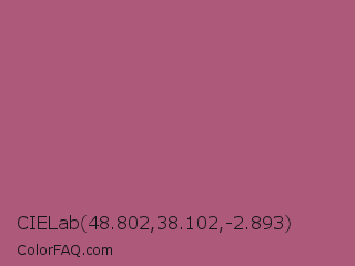 CIELab 48.802,38.102,-2.893 Color is a normal rose color and the nearest color is Tapestry #b05e81. Hex code #ad597a and RGB value is rgb(173,89,122). In RGB color space, this color is composed of 68% red, 35% green, 48% blue, In CMYK color space, this color is composed of 0% cyan, 49% magenta, 29% yellow , 32% black , In HSL color space, this color has a hue angle of 336° , 34% saturation and 51% lightness.