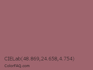 CIELab 48.869,24.658,4.754 Color is a normal red color and the nearest color is Rose Dust #9e5e6f. Hex code #9e646d and RGB value is rgb(158,100,109). In RGB color space, this color is composed of 62% red, 39% green, 43% blue, In CMYK color space, this color is composed of 0% cyan, 37% magenta, 31% yellow , 38% black , In HSL color space, this color has a hue angle of 351° , 23% saturation and 51% lightness.