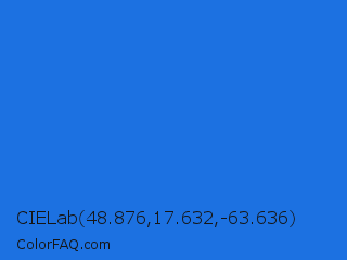 CIELab 48.876,17.632,-63.636 Color is a normal blue color and the nearest color is Bright Navy Blue #1974d2. Hex code #1c71e1 and RGB value is rgb(28,113,225). In RGB color space, this color is composed of 11% red, 44% green, 88% blue, In CMYK color space, this color is composed of 88% cyan, 50% magenta, 0% yellow , 12% black , In HSL color space, this color has a hue angle of 214° , 78% saturation and 50% lightness.