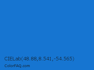CIELab 48.88,8.541,-54.565 Color is a normal blue color and the nearest color is Bright Navy Blue #1974d2. Hex code #1675d1 and RGB value is rgb(22,117,209). In RGB color space, this color is composed of 9% red, 46% green, 82% blue, In CMYK color space, this color is composed of 89% cyan, 44% magenta, 0% yellow , 18% black , In HSL color space, this color has a hue angle of 210° , 81% saturation and 45% lightness.