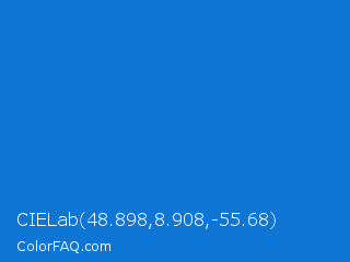 CIELab 48.898,8.908,-55.68 Color is a normal blue color and the nearest color is Bright Navy Blue #1974d2. Hex code #0d75d3 and RGB value is rgb(13,117,211). In RGB color space, this color is composed of 5% red, 46% green, 83% blue, In CMYK color space, this color is composed of 94% cyan, 45% magenta, 0% yellow , 17% black , In HSL color space, this color has a hue angle of 208° , 88% saturation and 44% lightness.
