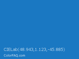 CIELab 48.943,1.123,-45.885 Color is a normal blue color and the nearest color is Bright Navy Blue #1974d2. Hex code #1a78c2 and RGB value is rgb(26,120,194). In RGB color space, this color is composed of 10% red, 47% green, 76% blue, In CMYK color space, this color is composed of 87% cyan, 38% magenta, 0% yellow , 24% black , In HSL color space, this color has a hue angle of 206° , 76% saturation and 43% lightness.